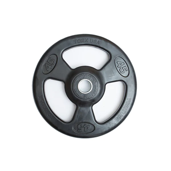 The ISO-Grip Plate is the industry’s answer to a 360-degree easy-pick-up plate cleverly achieved by casting the hub thicker than the rim. The patent-pending, radical benefit of a thicker hub and a streamlined rim is the anti-pinch nature of using the plates. The streamlined rim ensures a comfortable grip and enhanced maneuverability with its 3-grip design. The steel composite casting combined with the rubber coating makes the plates highly durable. Perfect for school weight rooms, in-home gyms, and commercial settings.