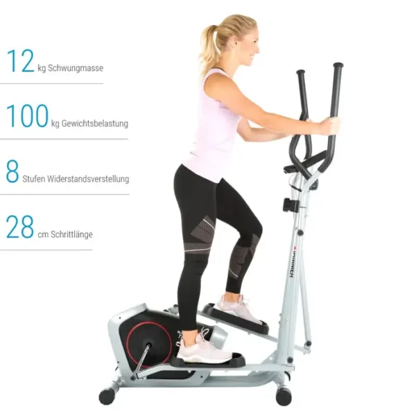 The ergonomics of the cross trainer Ellyptech CT3 are designed for people of any body height between 1.55 m and 2 m. The hand grips of the Ellyptech CT3 allow a variety of grip positions for short and long arms. In terms of body weight, your starter cross trainer can handle up to 100 kg with ease.